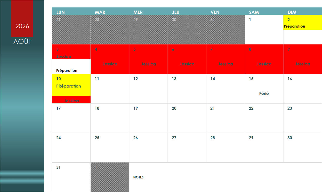 Planning des disponibilités non contractuel sous réserve des Transactions en Cours